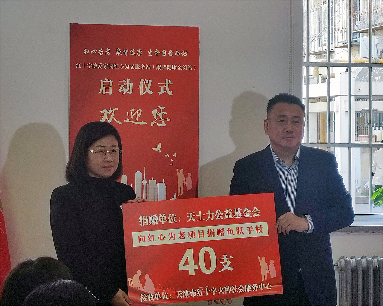 ÔÚÓë»á¼Î±öµÄ¼û֤ϣ¬Ìì½òÊÐÃñÕþ¾ÖÑøÀÏ·þÎñËæ´¦³¤ÅÓÓêÉúÓëÍêÃÀÕæÈ˹«Òæ»ù½ð»áÃØÊ鳤Ҷ¾üÅäºÏΪºìÊ®×Ö·º°®¼ÒÔ°ºìÐÄΪÀÏ·þÎñÕ¾¾ÛÖÇ¿µ½¡½ðÍåÕ¾½ÒÅÆ¡£
